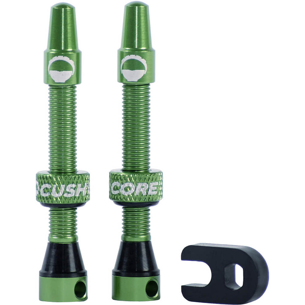 This specially designed tubeless air valve is required for use with each CushCore insert. The air passageway is T-shaped, rather than a simple through-hole. This T-shape prevents the insert from obstructing airflow through the valve. These are sold as a pair and the 55mm option should accommodate deep rim profiles easily. Available in red or green to make you jolly all year round.