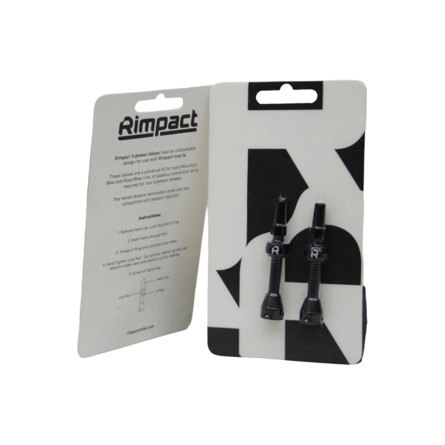 Contents: 2x Rimpact Insert Compatible Tubeless Presta Valves. 2x Rim Stickers